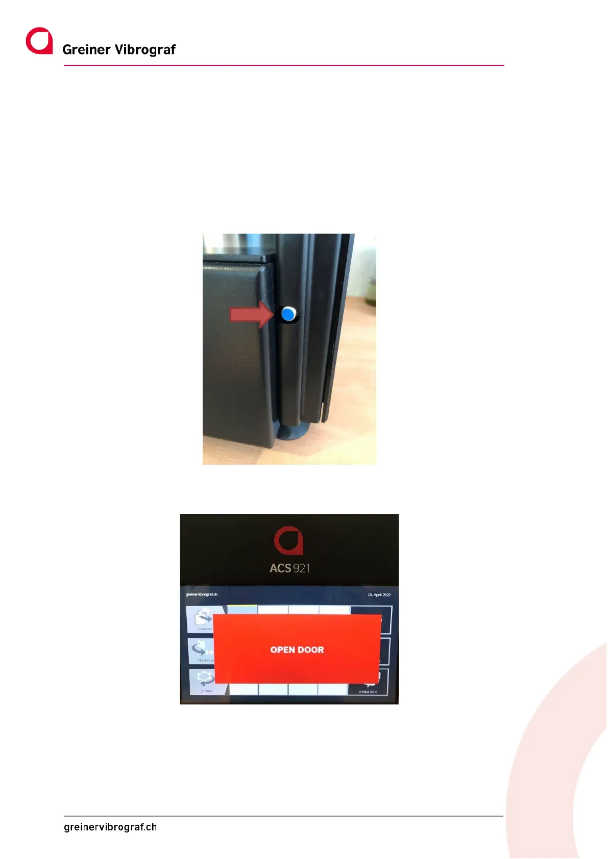 The ACS 921 is equipped with a door monitoring system. A sensor installed at the bottom right of the housing
