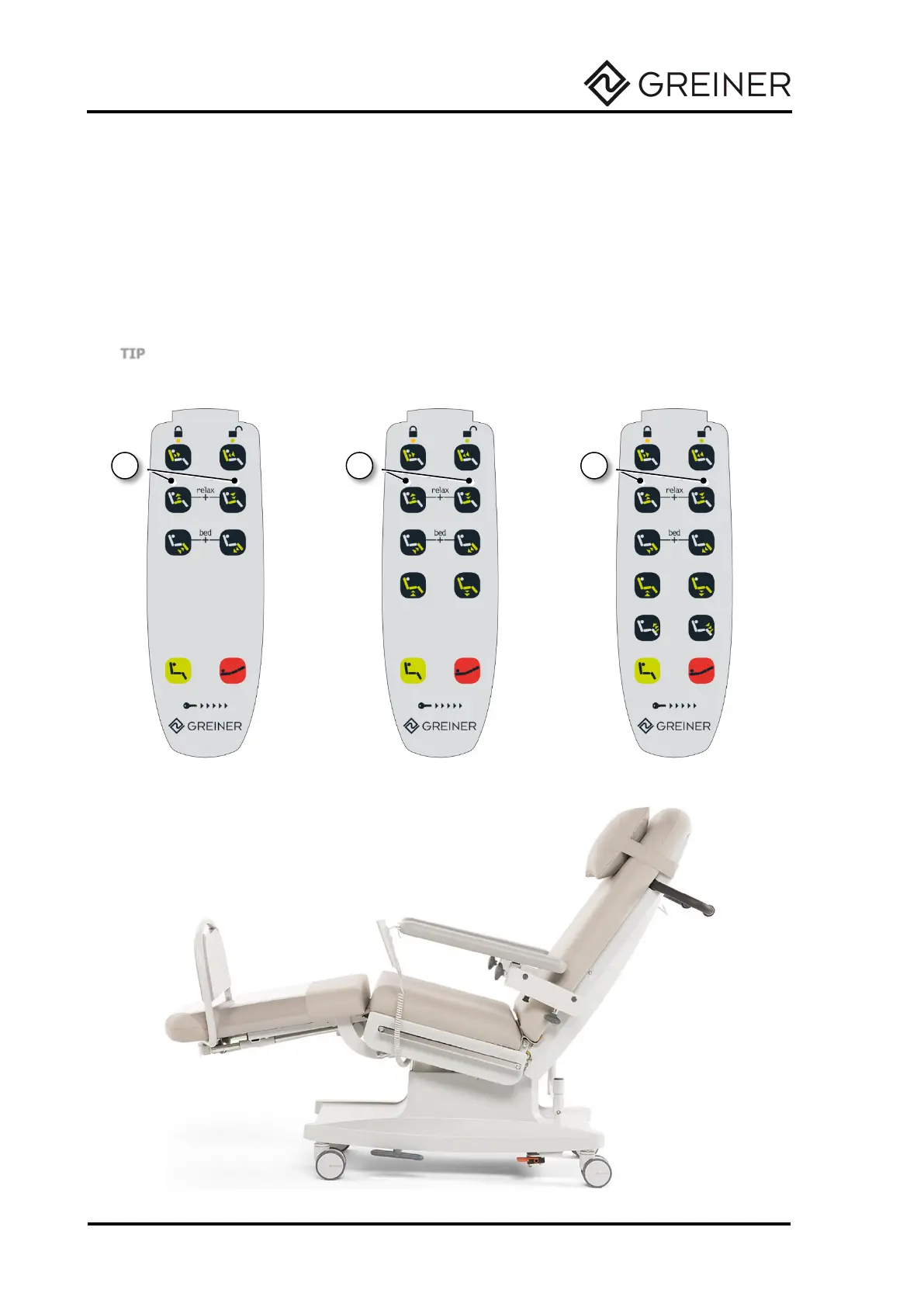 activated simultaneously. All lying surfaces (backrest, seat surface and leg section) move simultaneously to the