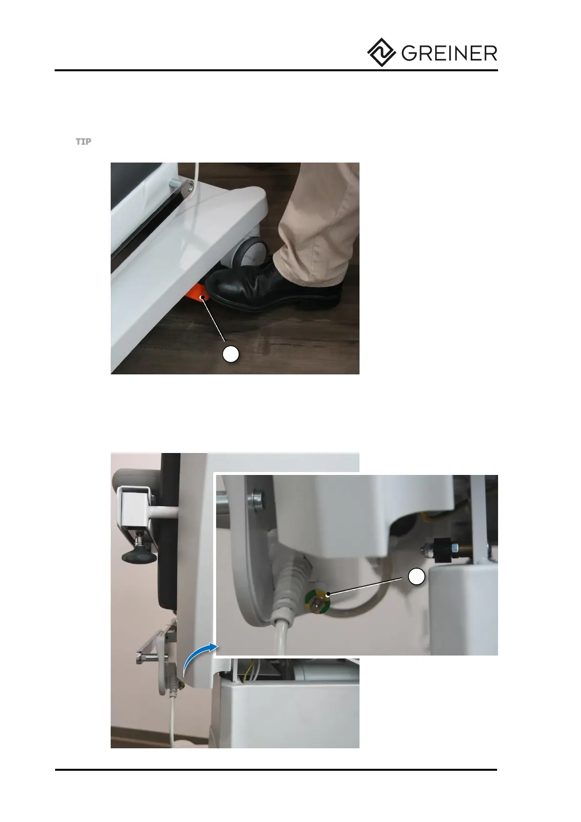 Pressing the orange foot switch brings the couch directly into the shock position (Trendelenburg position) (see