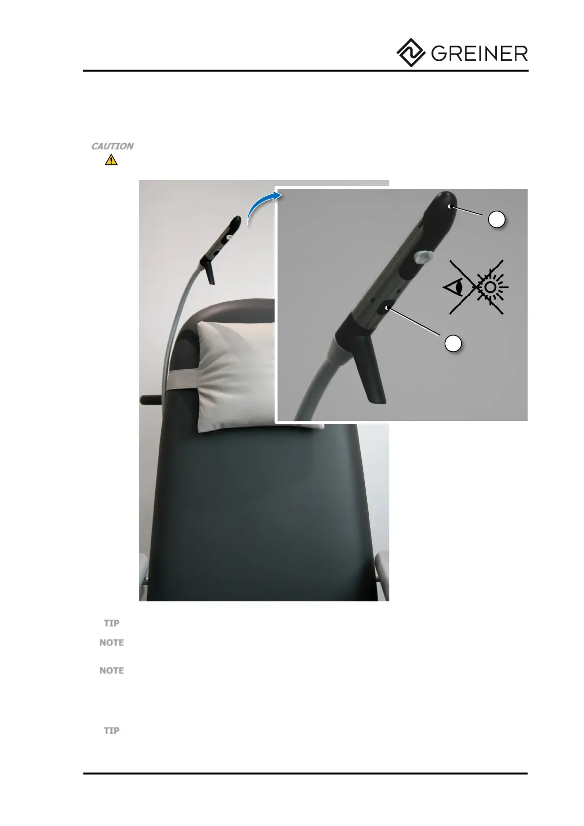 Press the button (1) on the lamp head (2) to switch it on and off.