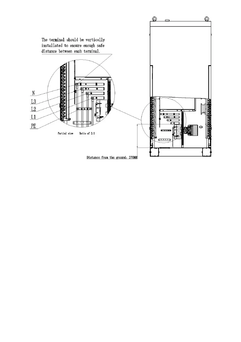 AC incoming cables at the bottom of the cabinet with fireproof mud to prevent insects or