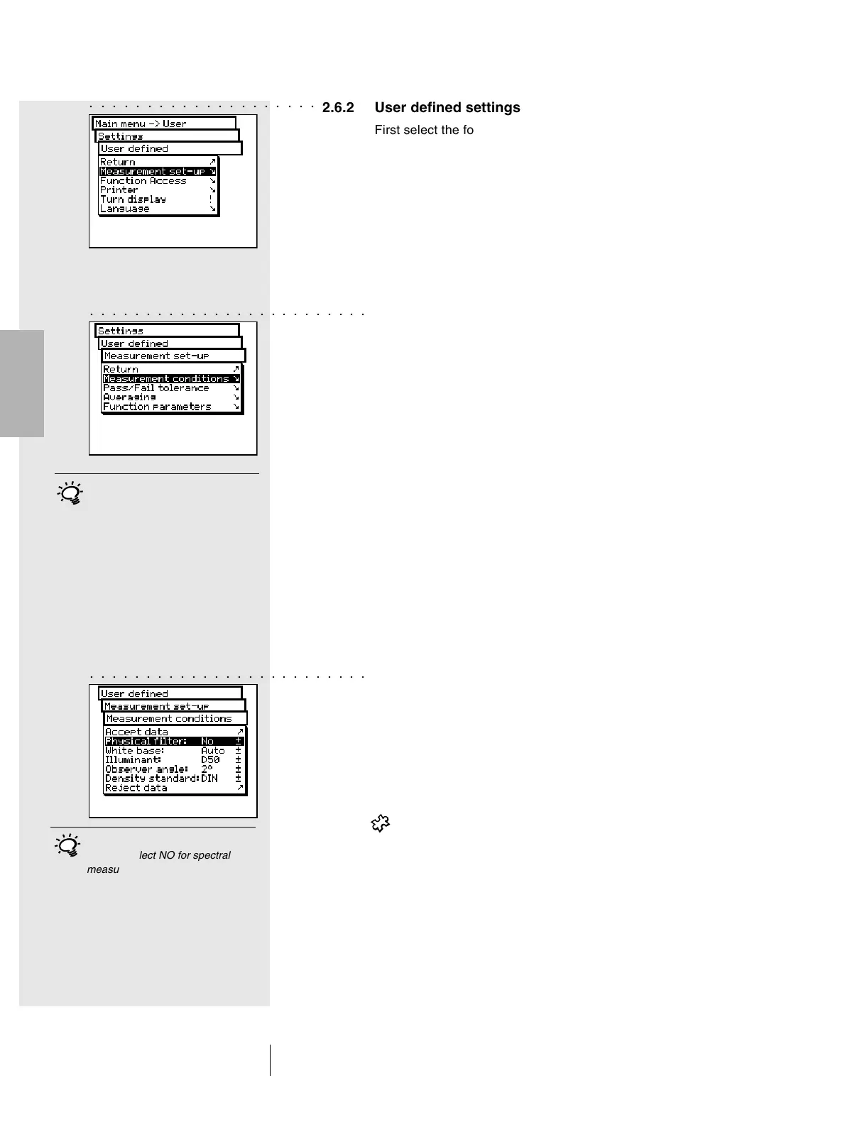 2.6.2 User defined settings