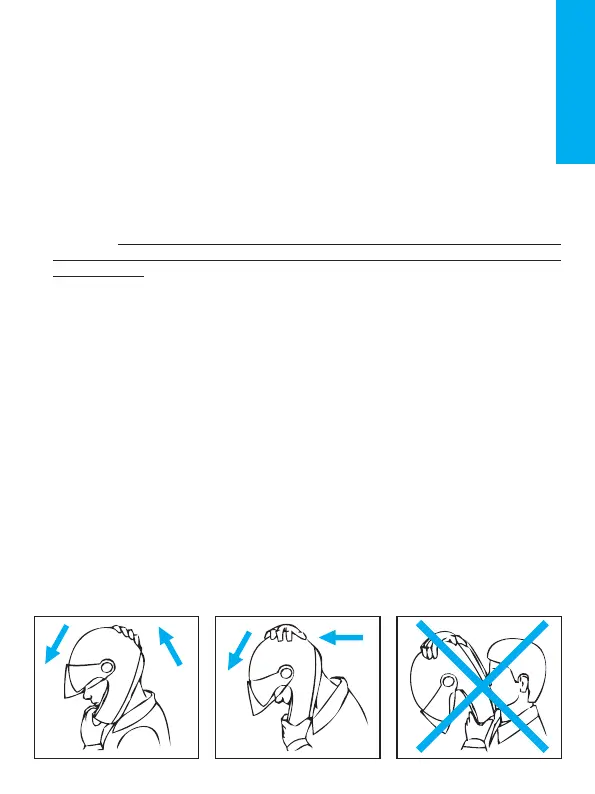 - El casco no tiene que girar, ni moverse sobre la cabeza o descalzarse. De lo con-