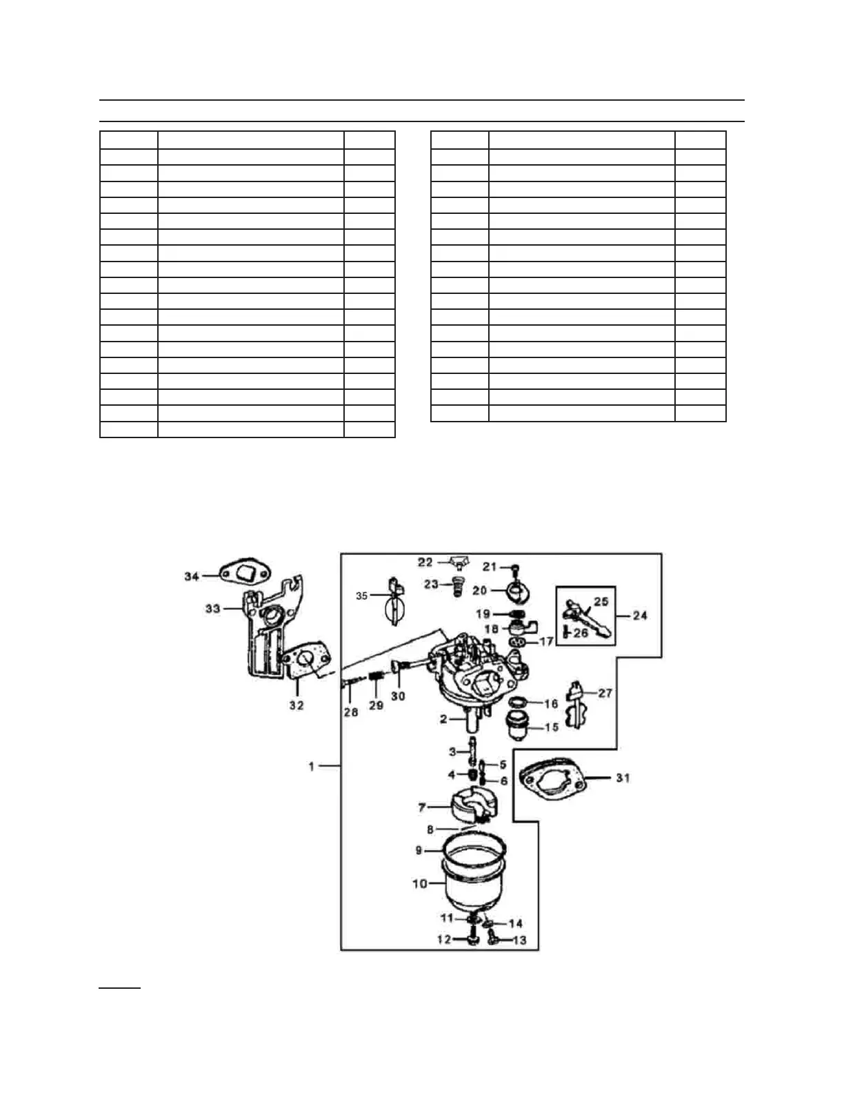 CARBURETOR PARTS LIST & DIAGRAM