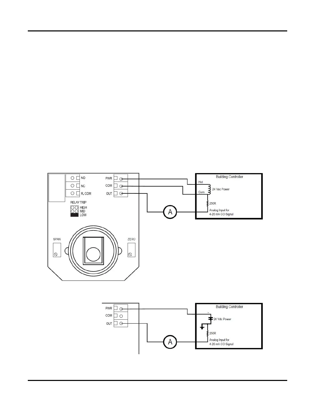 Once calibration is complete, remove ammeter and reconnect signal wire to OUT terminal of the CO sensor.