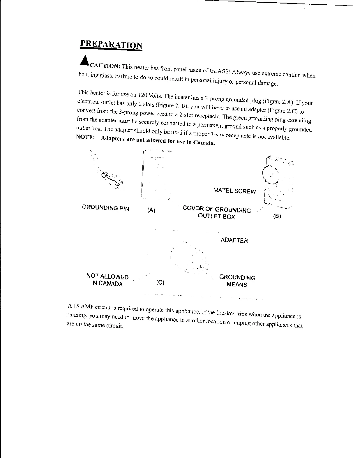The heater has a 3-prong grounded plug (Figure 2.A),