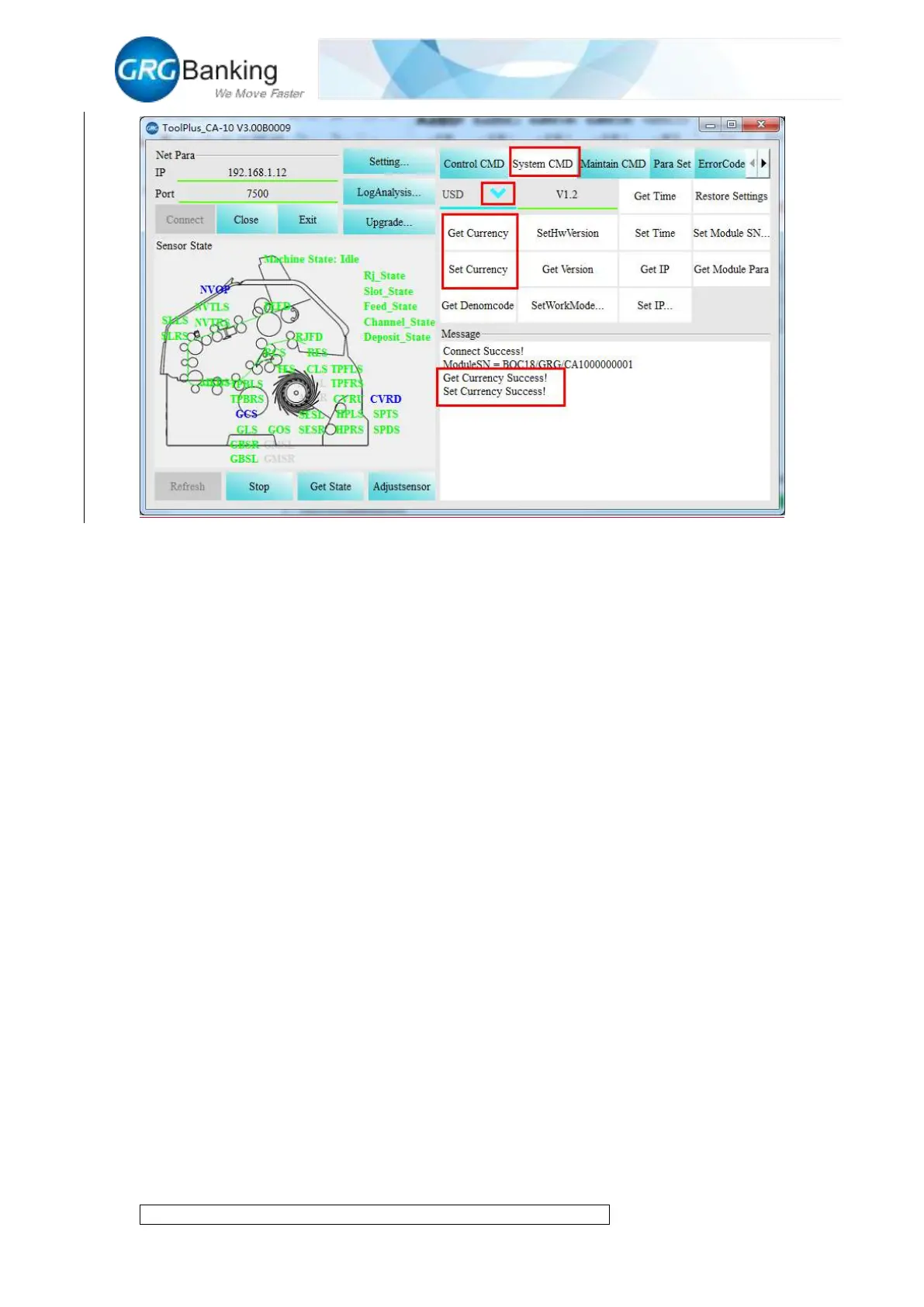 1) Click “System CMD” and “Set workmode”, and in the pop-up “Parameter set” window,