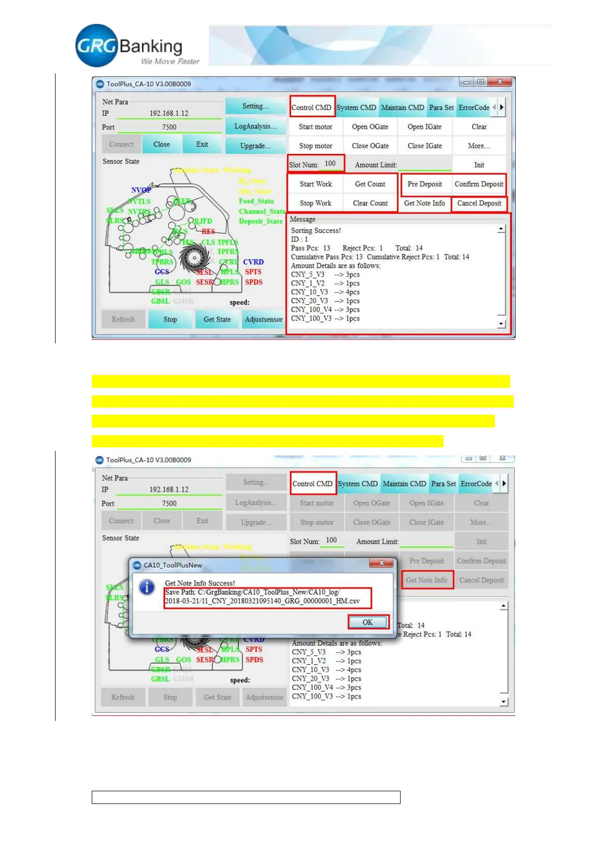 After one note counting, click “Get Note Info” to get the identification information of the current