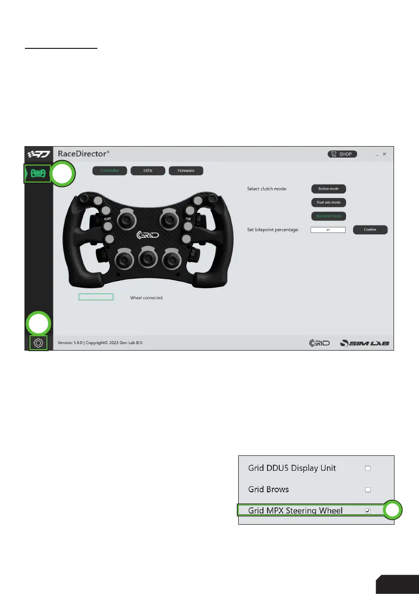 Press the ‘Gear’ (1) symbol to enter the settings page. To keep the interface