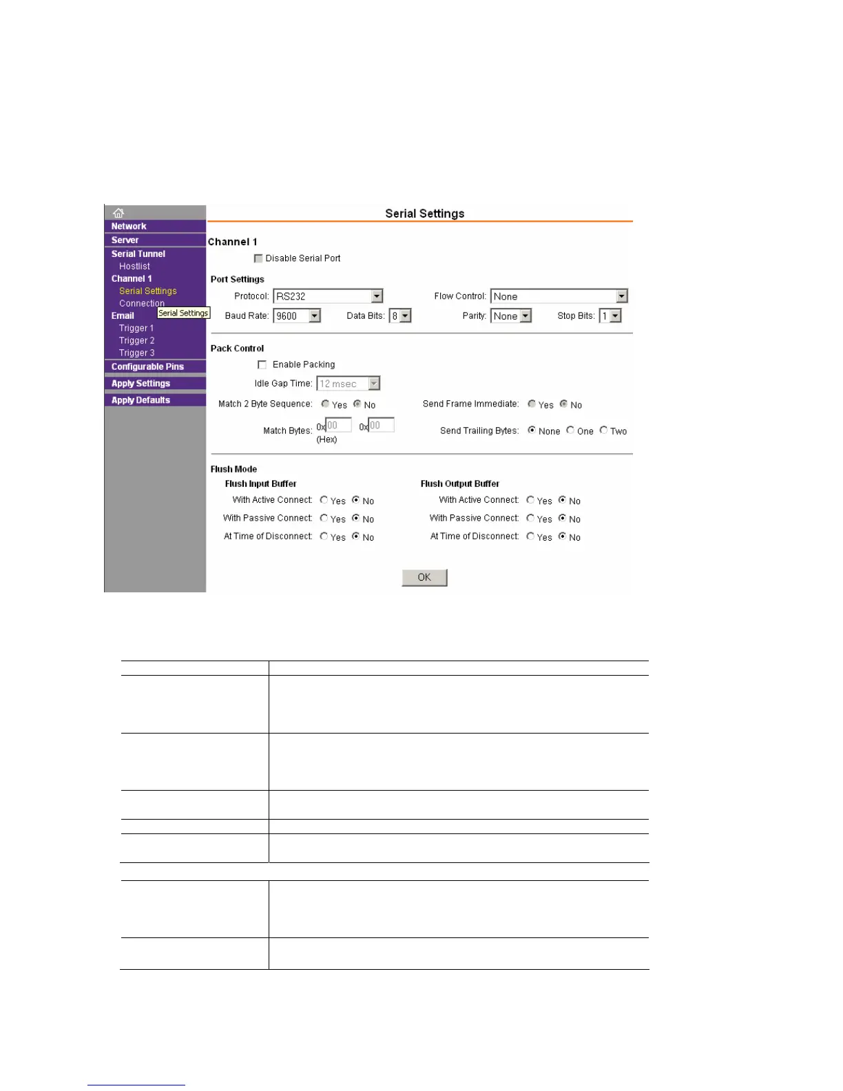 1. On the main menu, click Serial Settings (under Channel 1) to display the Serial Settings window.