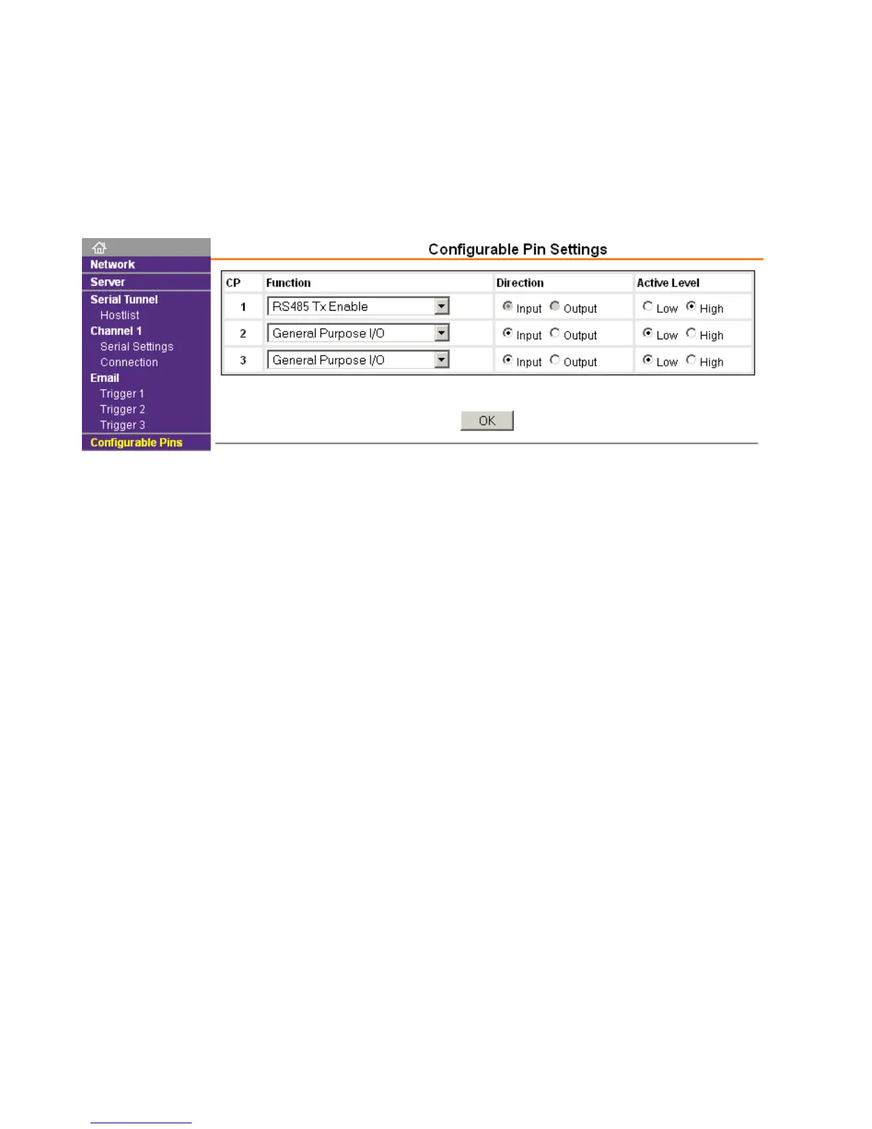 1. On the main menu, click Configurable Pins. The Configurable Pins page opens.