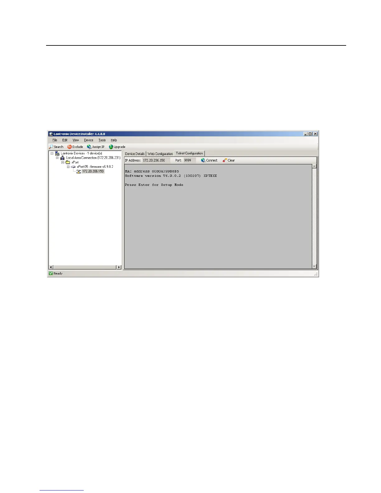 Note: If you use the Telnet Configuration tab on Device Installer, skip steps 1and 2.