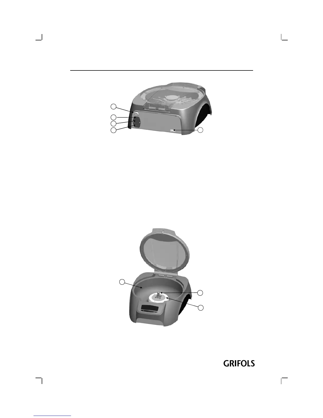 The Centrifugation chamber (Ref. (1), Figure 3) is the centrifuge area designed to