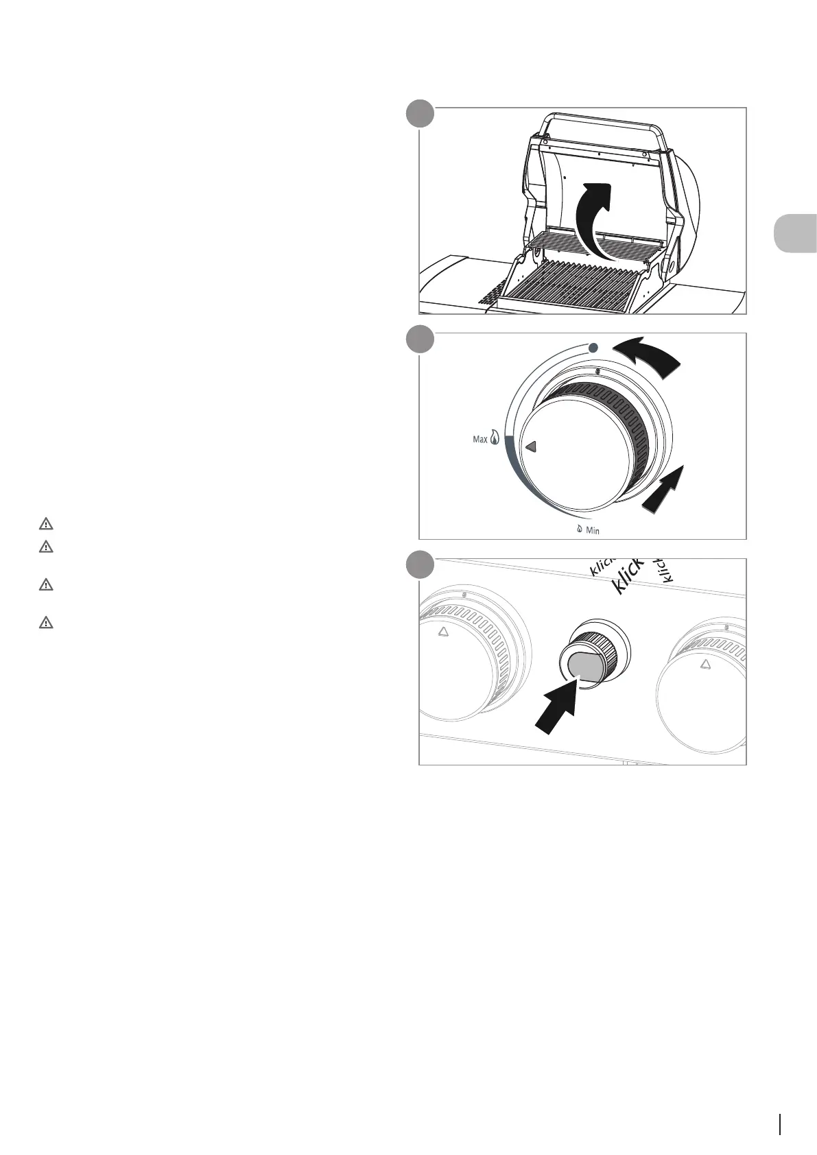 4. Premere l‘accenditore Piezo (3) più volte fino a che il