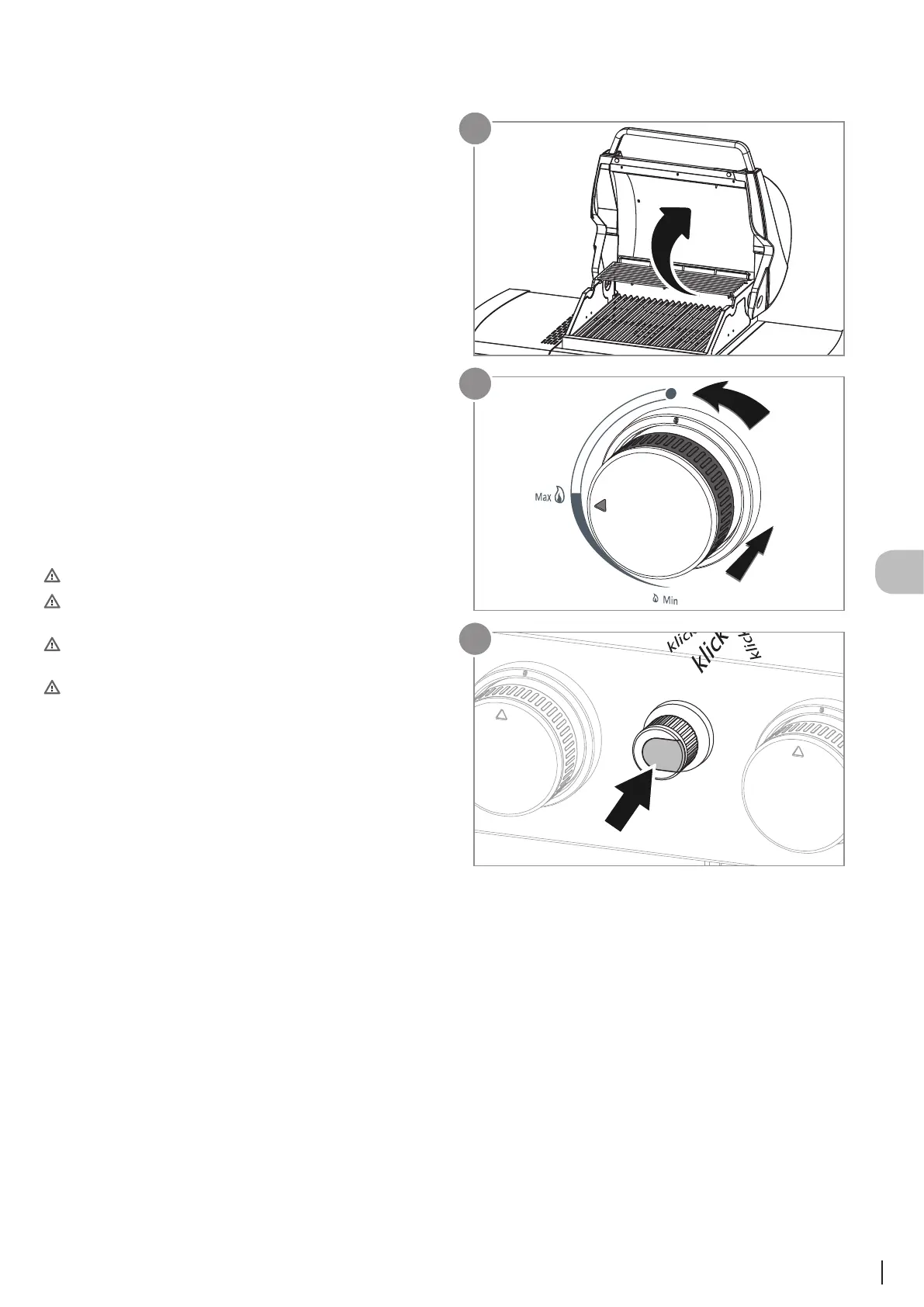 OSTRZEŻENIE! Każdy palnik należy zapalić oddzielnie, naciskając