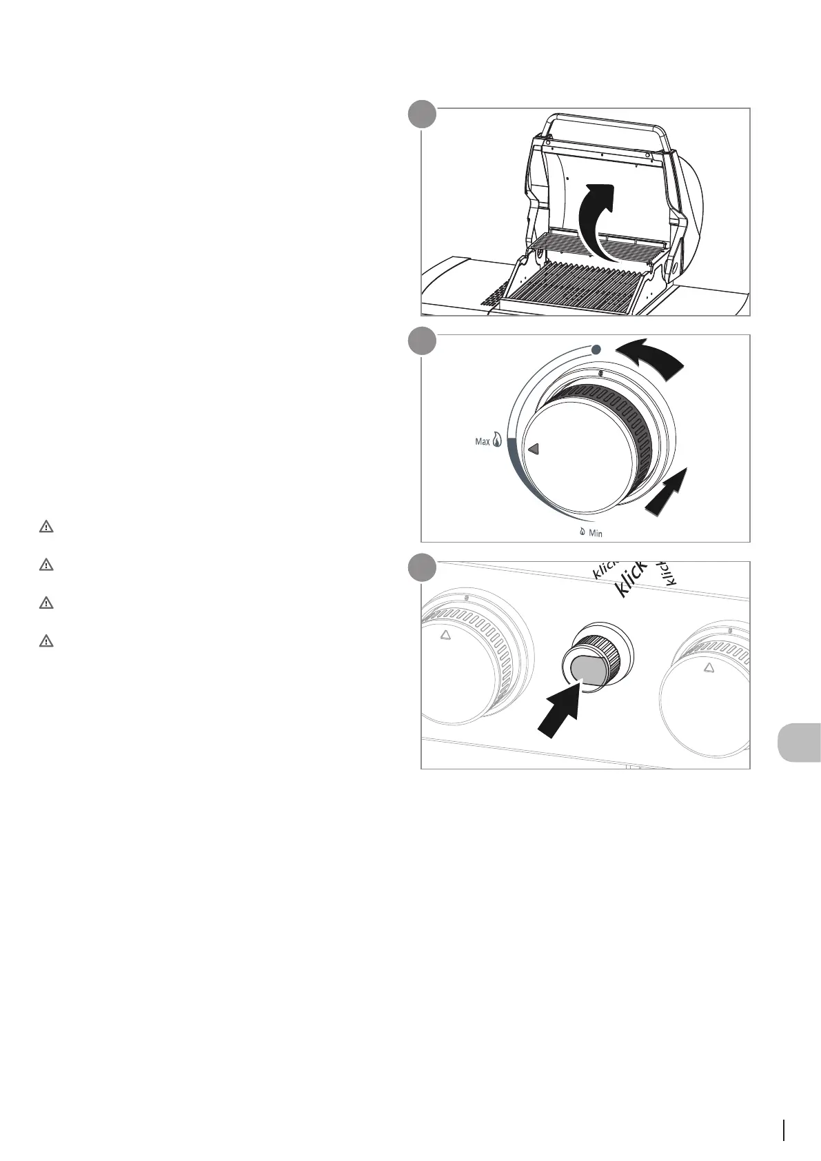 4. Натиснете пиезо запалката (3) неколкократно, докато