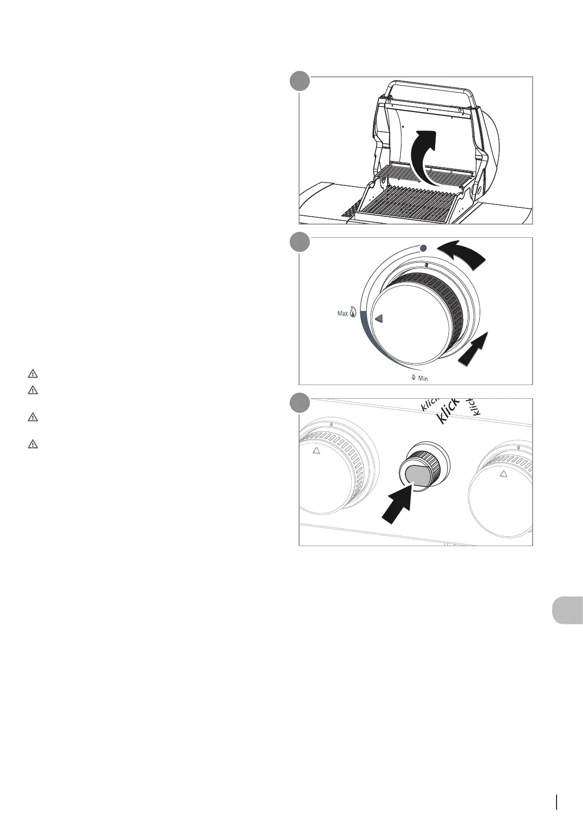 4. Πατήστε επανειληένα την πιεζοηλεκτρική ανάφλεξη (3) έχρι να
