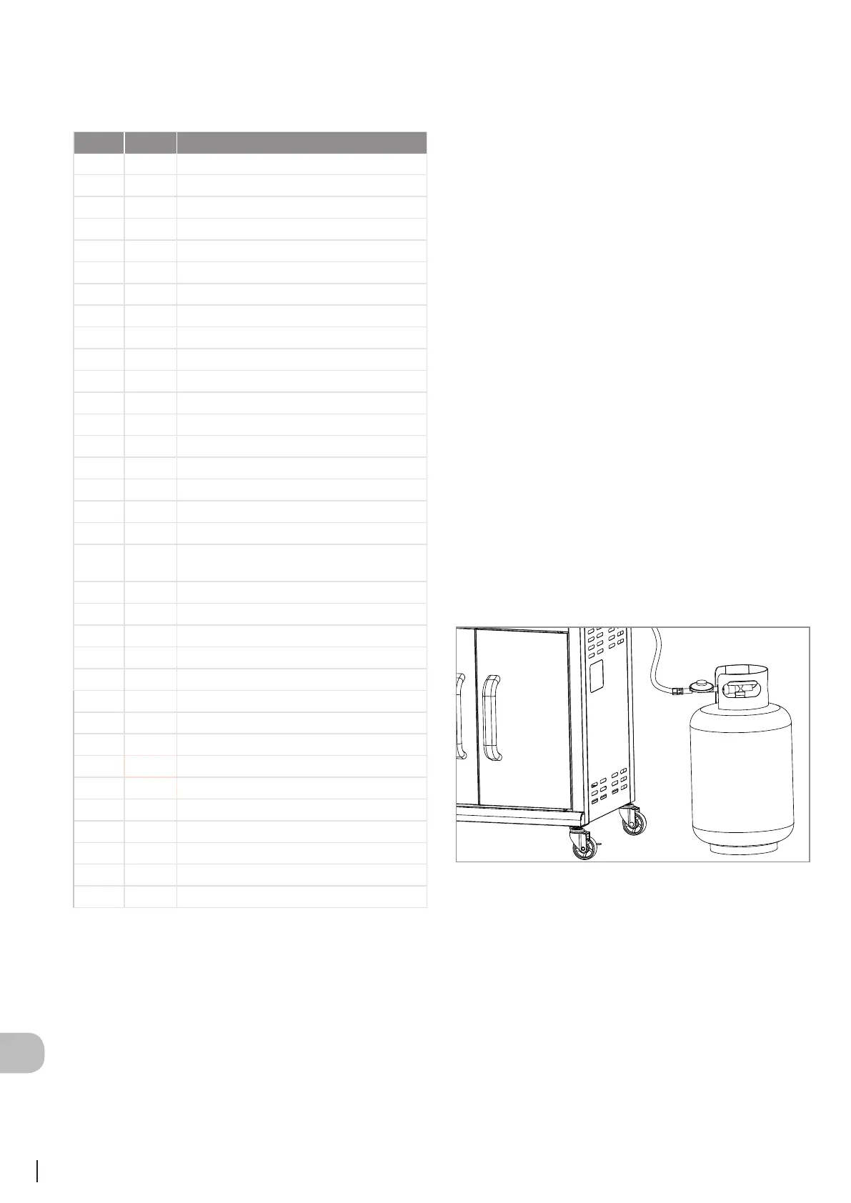 Ekki má geyma gasflöskuna í neðri skápnum meðan á notkun
