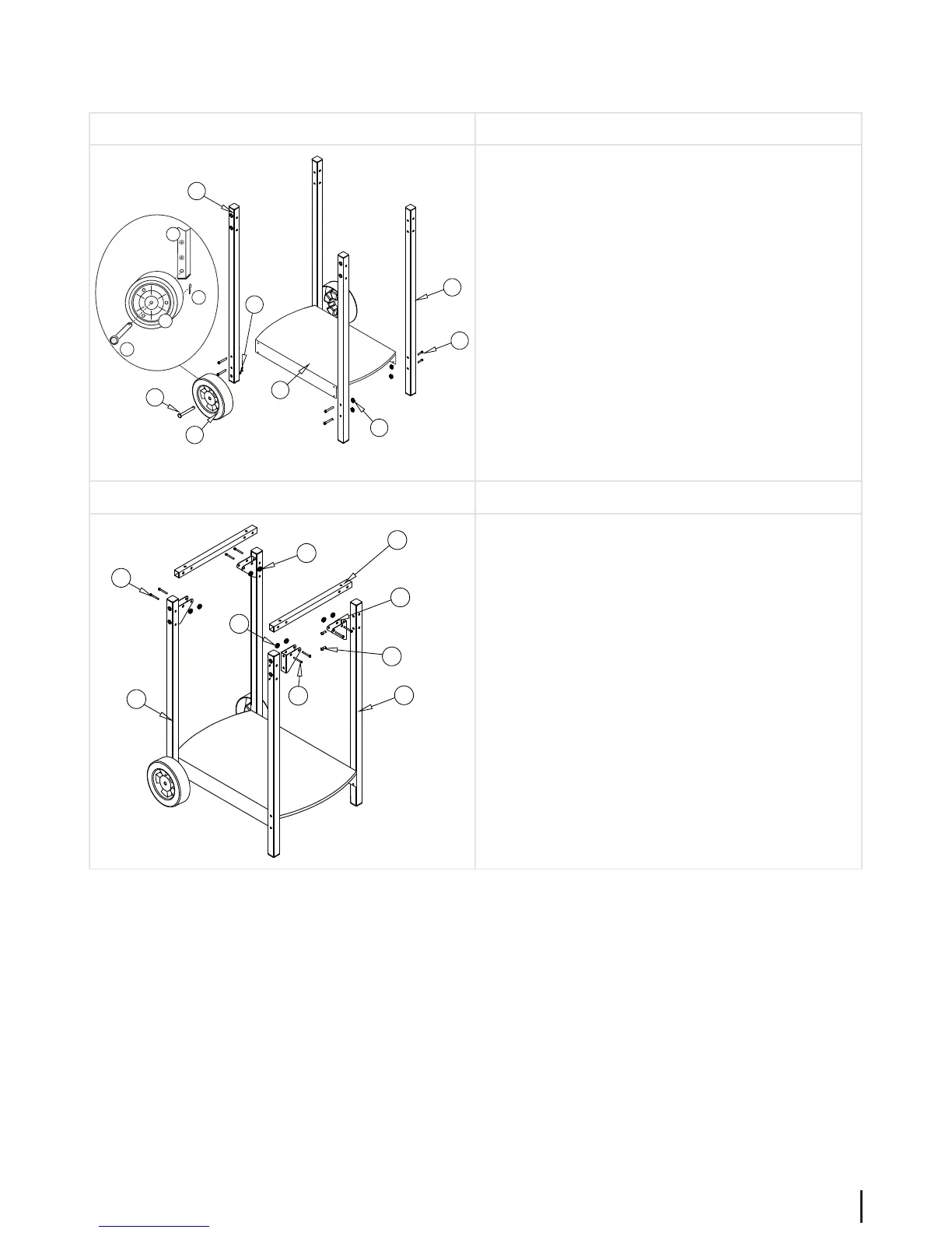 • Assemble the legs (19 + 20) to the shelf (23) using