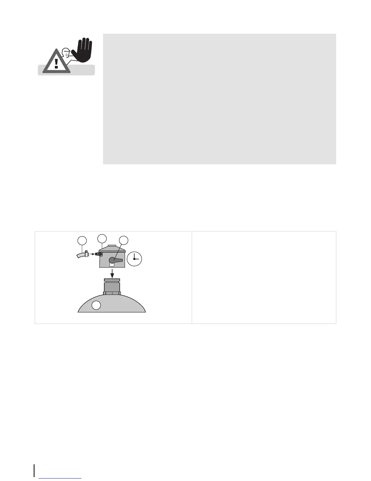 • When connecting the gas cylinder ensure that there are no sources of ignition within a