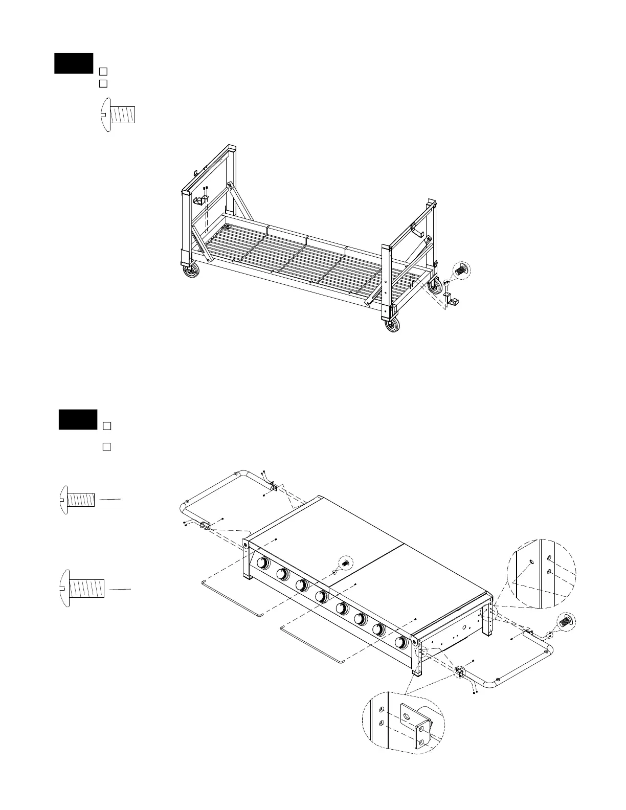 Install Tank Holders to each side of Cart Frame. (Tighten se-curely using 4 of 1/4"x3/8" Phillips Head Screws)