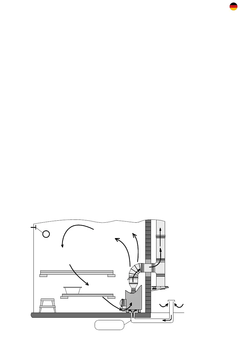 • Die Installation des Ofens muss unter Beachtung der geltenden technischen Vorschriften