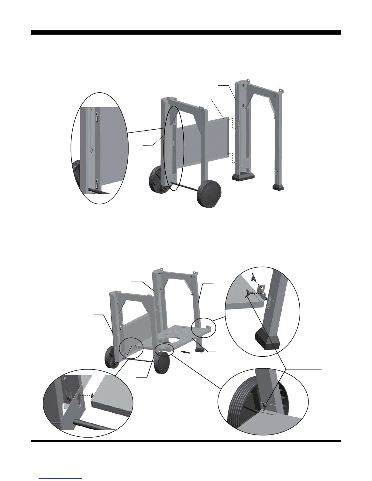 1) Insert the 2pcs pre-installed bolts on bottom panel (35) into the 2 key holes on front left pole (15)