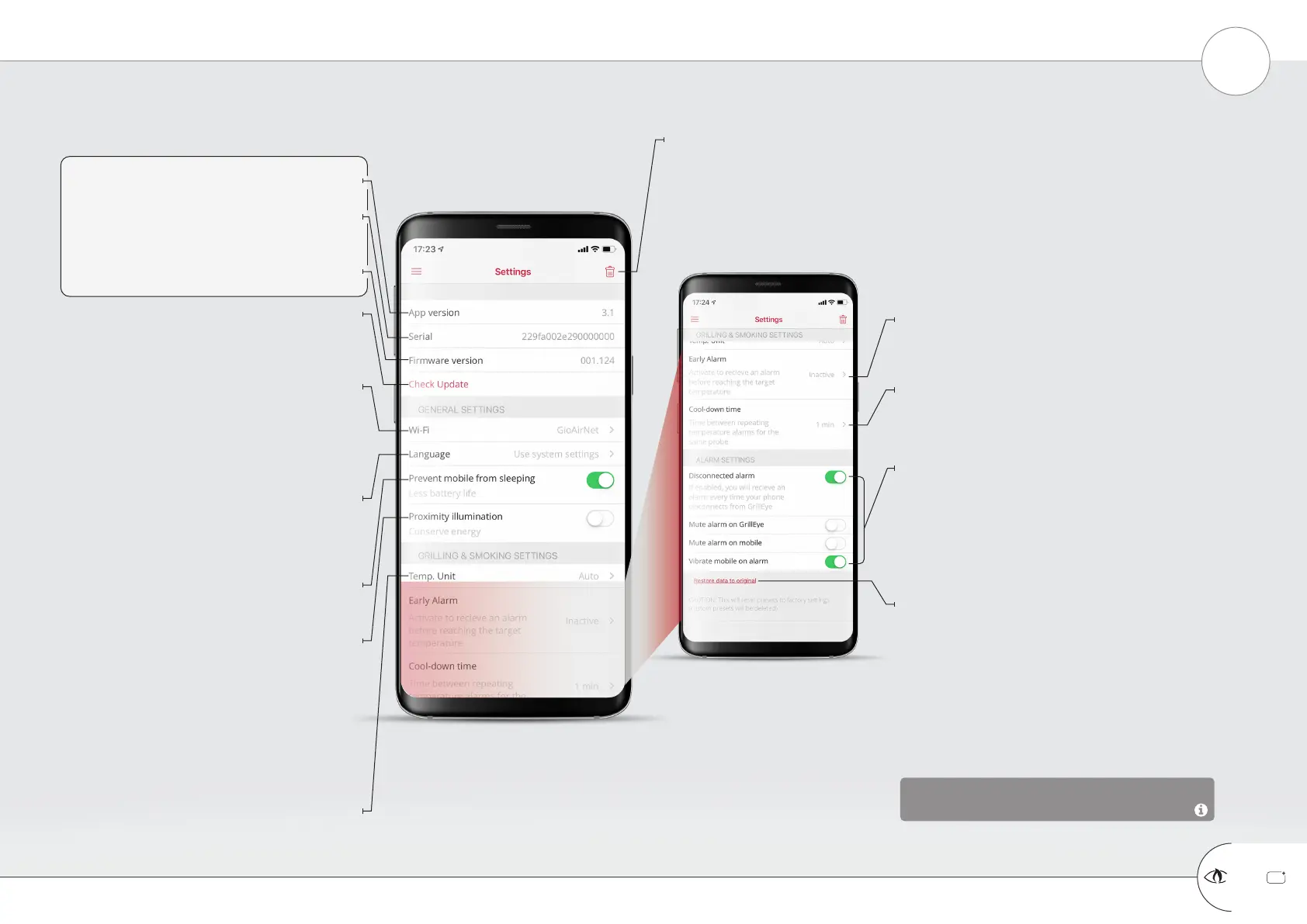 the GrillEye device. To delete such data, use the “Restore data