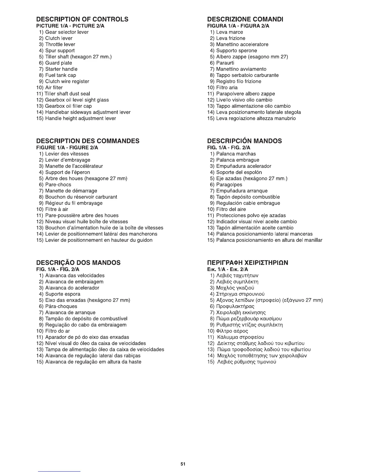 Grillo 11500 - Description of Controls; Control Identification (Figs 1;A, 2;A)