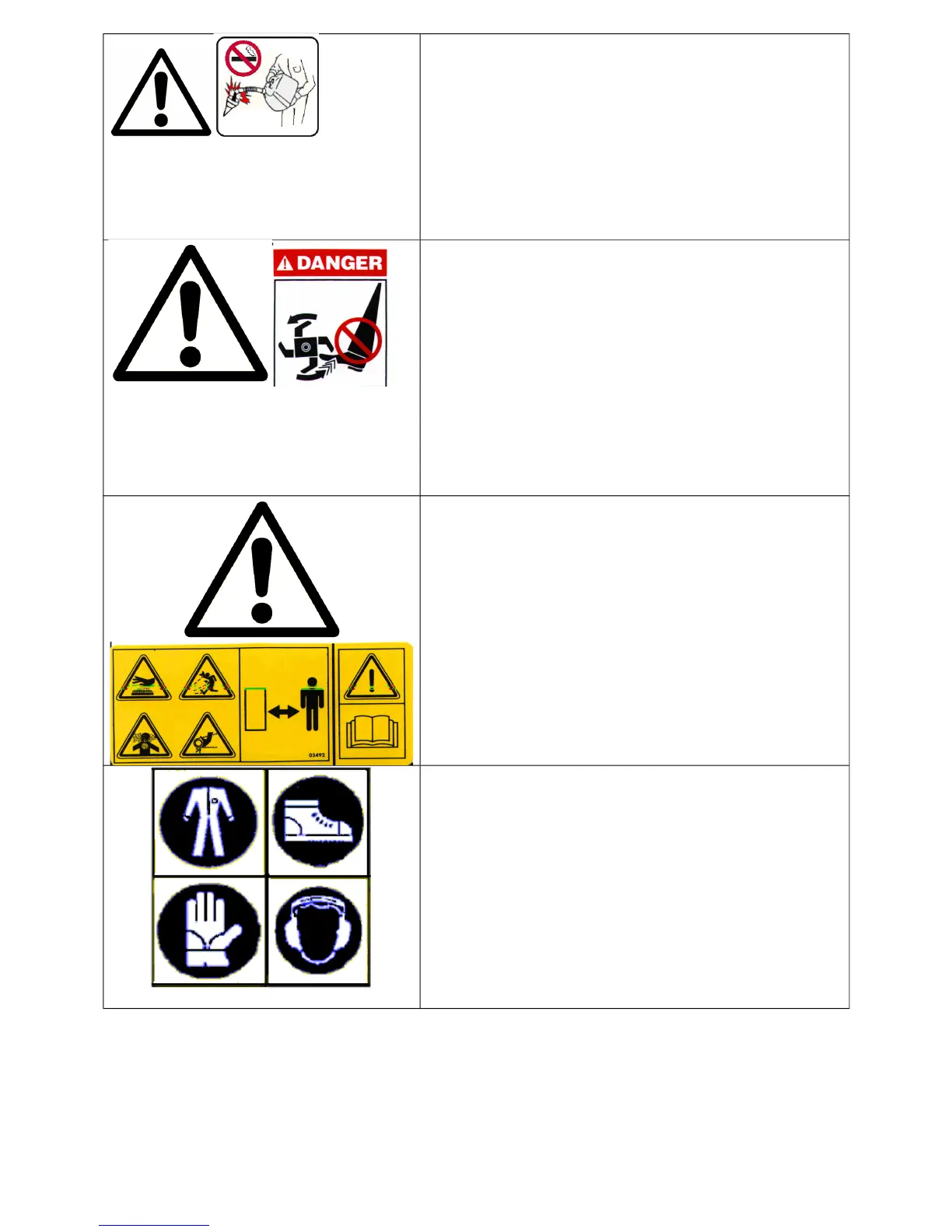 ¡Peligro! Órgano cortante. Mantener lejos los pies y las manos. No limpiar la