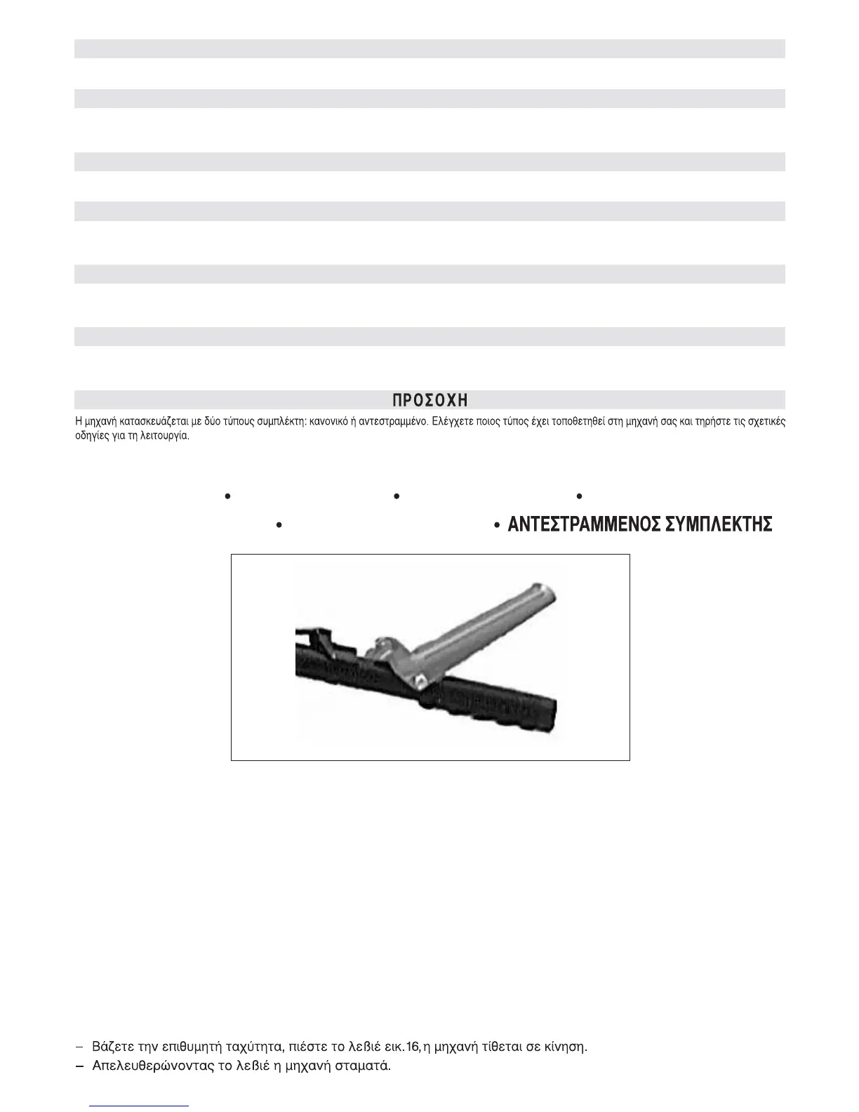 – Engate a velocidade desejada, carregue na alavanca da fig. 16. A máquina começa a deslocar-se.