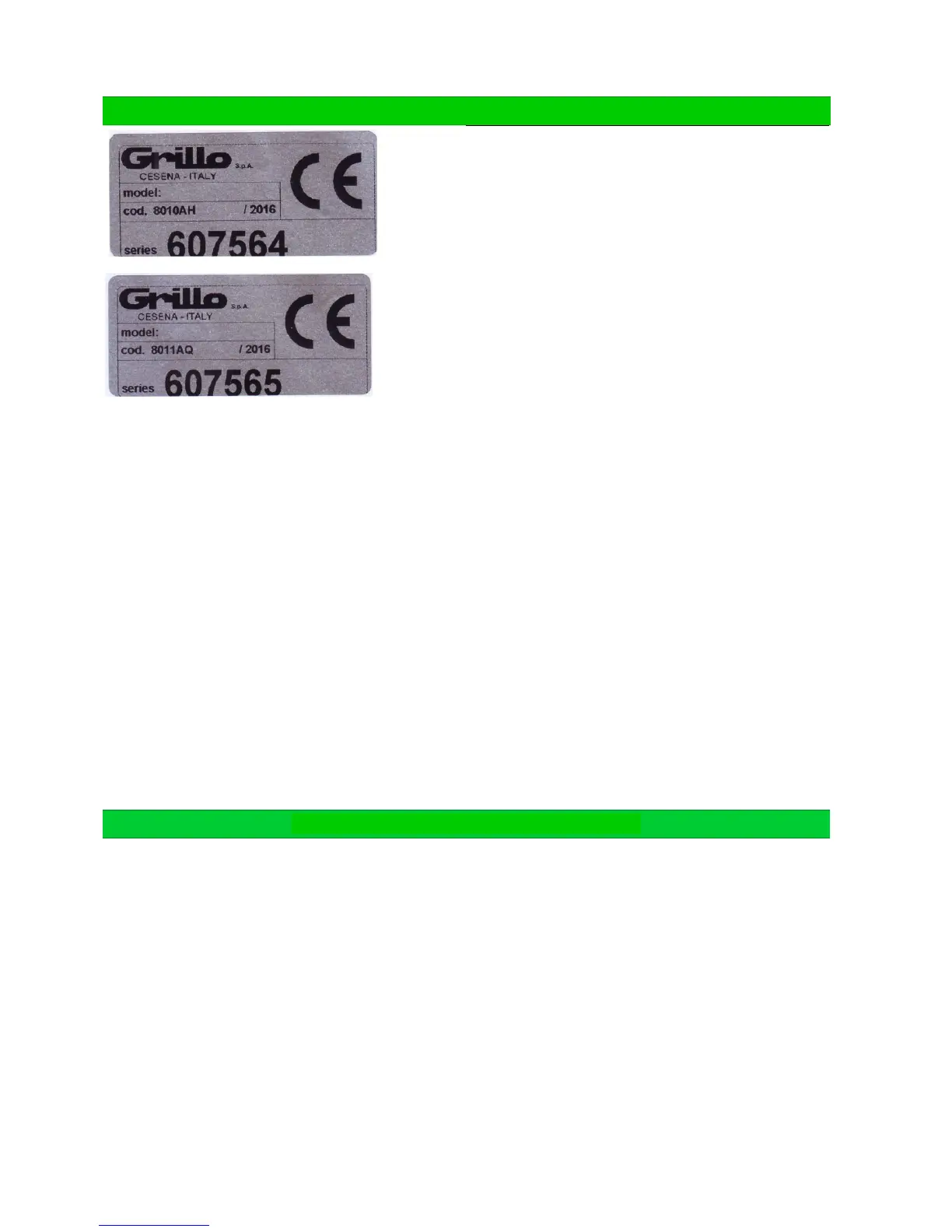 copy of the registration card of the machine, which they will print up from the Grillo website. For the