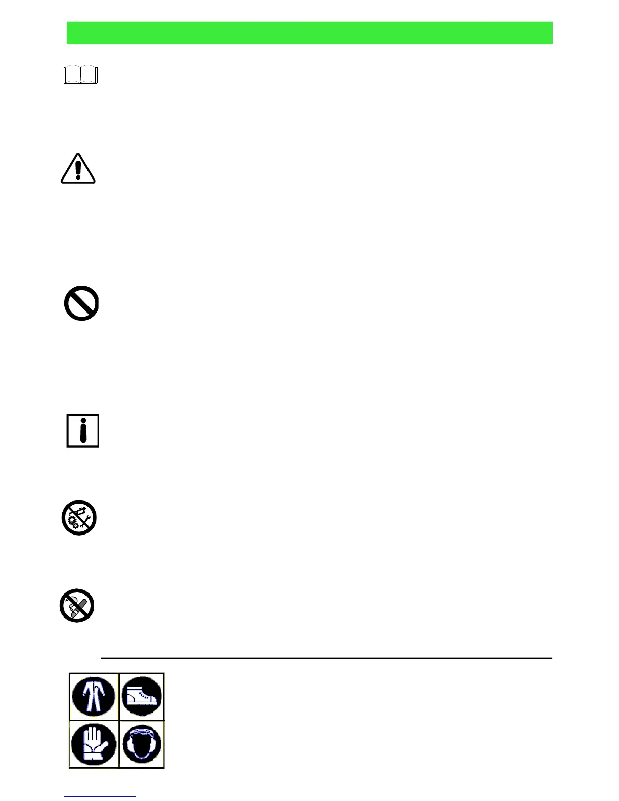 INTERDICTION, NE PAS FAIRE! - signifie qu'il est absolument interdit d' effectuer les opérations reportées sous cette indication,