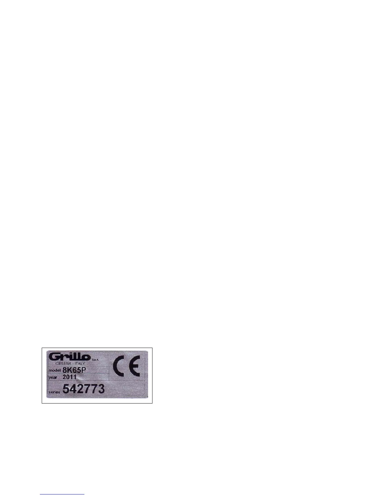 Auf der Lenksäule befindet sich eine Plakette mit der Seriennummer der Maschine, Modell GRILLO CL