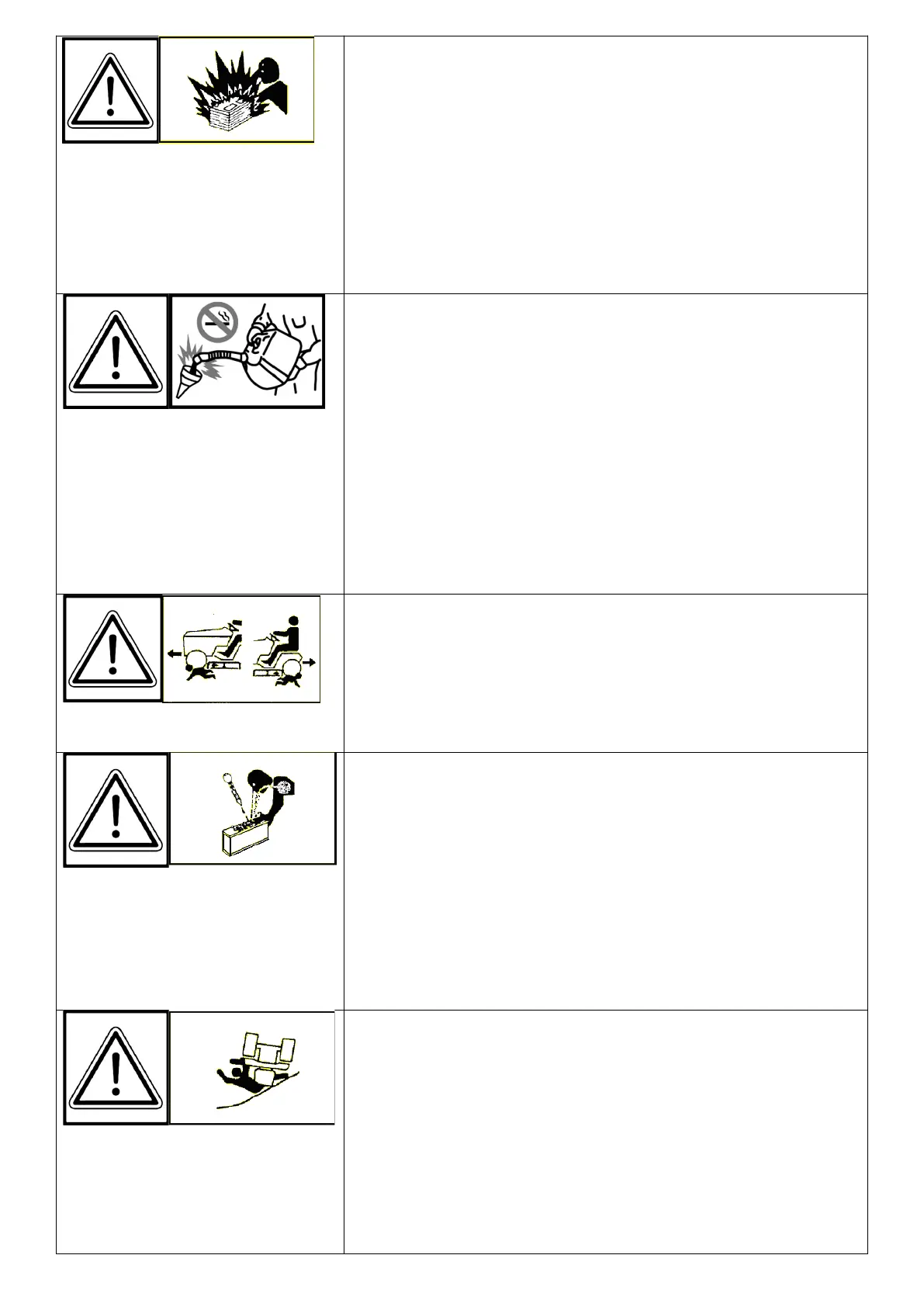 Handle fuel with care, it is highly flammable: Do not refuel machine while smoking, when