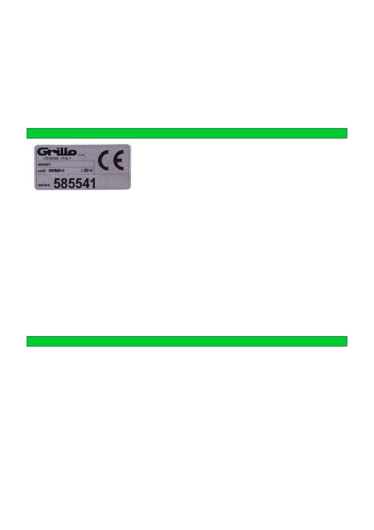 certificato di garanzia della macchina al cliente finale, stampando una copia della registrazione dal sito Grillo. Per quanto