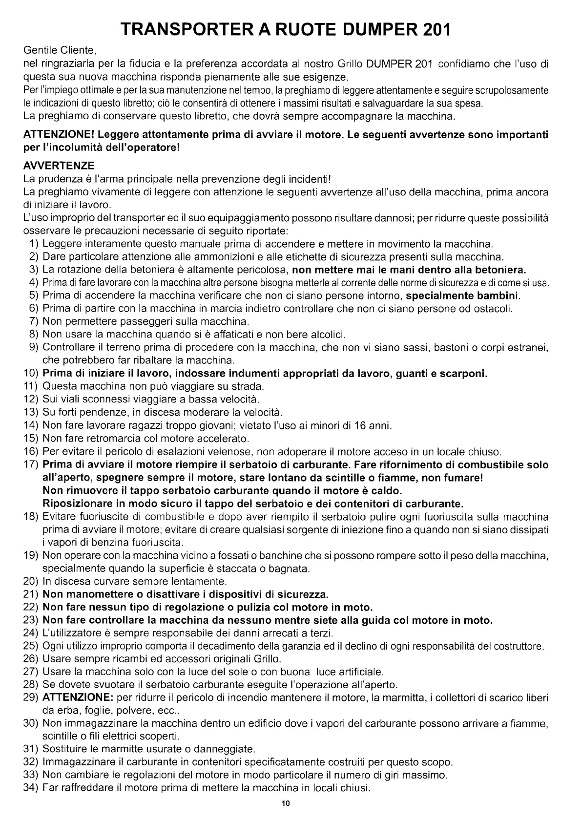 di avviare il motore. Le seguenti avvertenze sono importanti