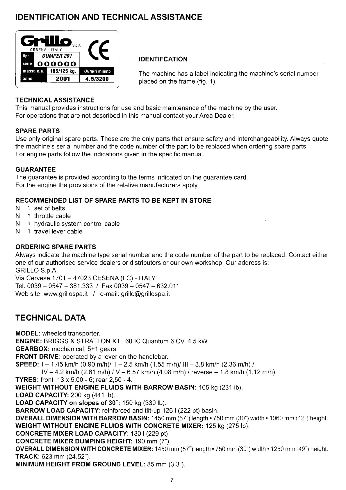 WE|GHT WITHOUT ENGINE FLUIDS WITH CONCRETE MIXER: 125 kg