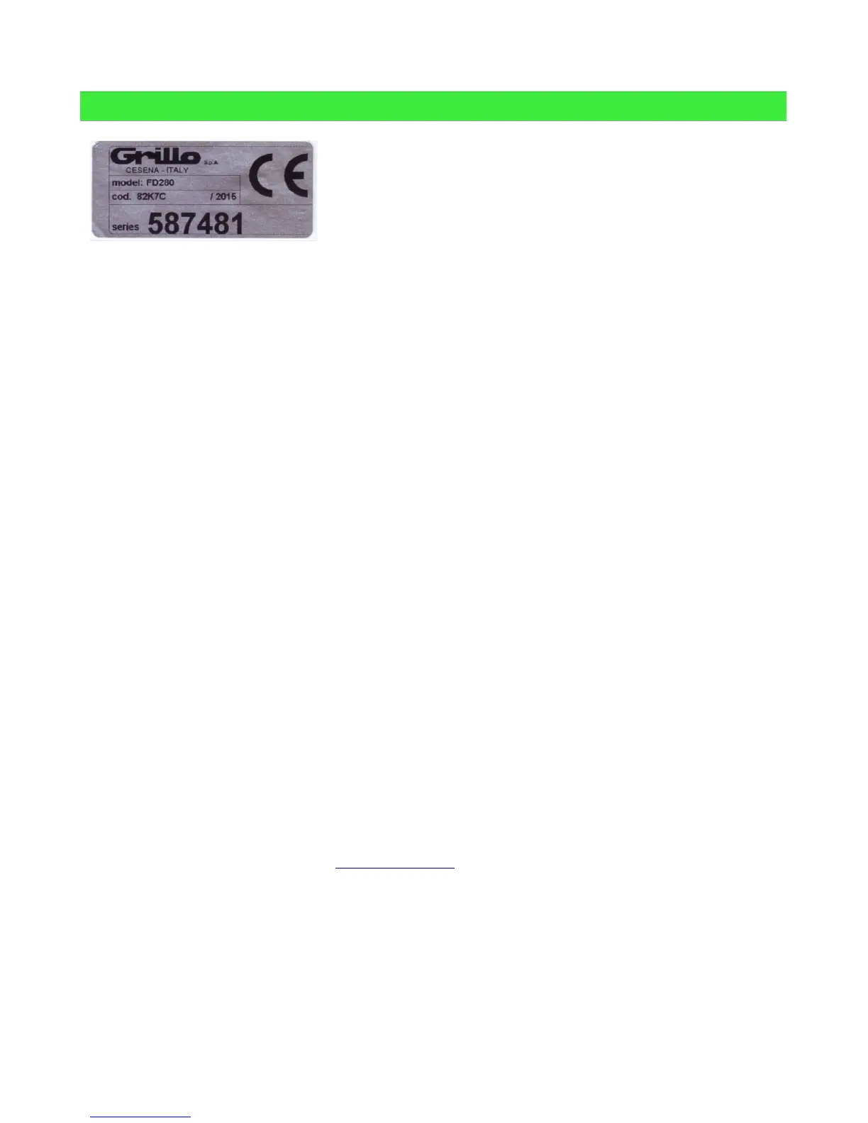 der Maschine dem Kunden geben. Die Kopie kann von der Grillo Webseite heruntergeladen werden.