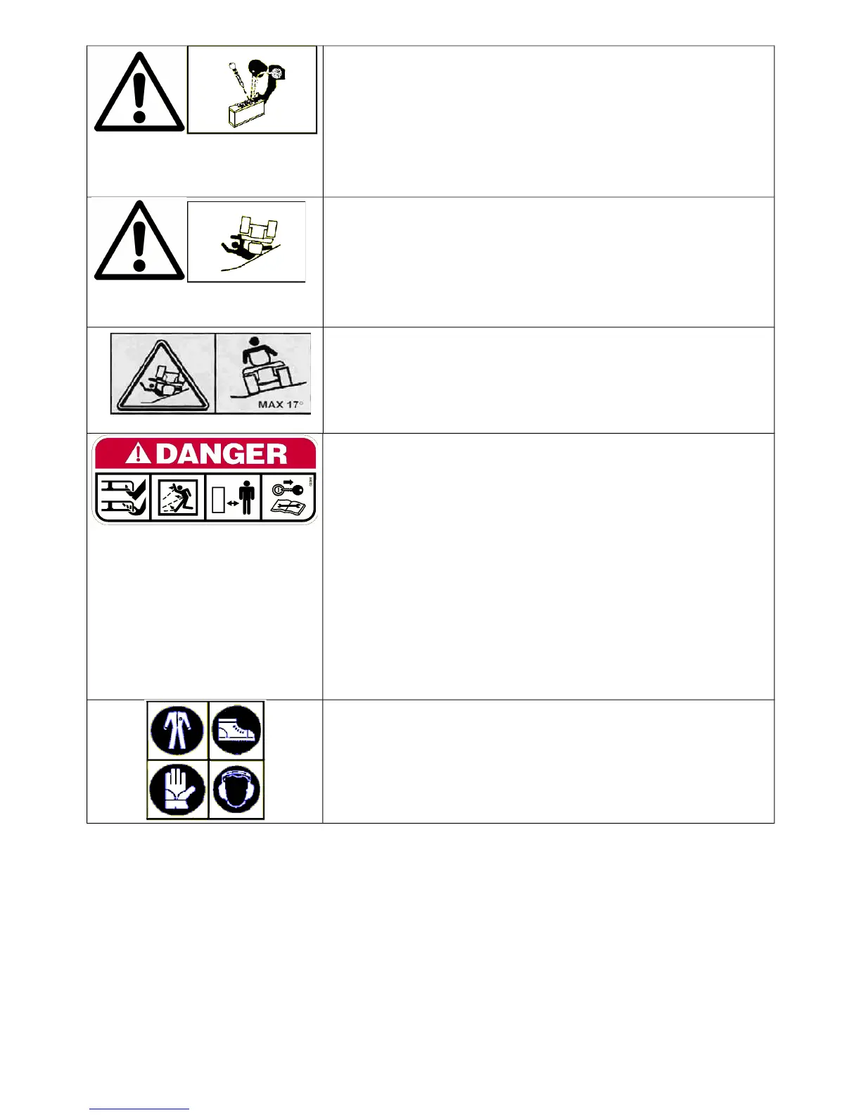 DANGER! Machine rollover: Do not use this machine on slopes greater than 17° (30%).