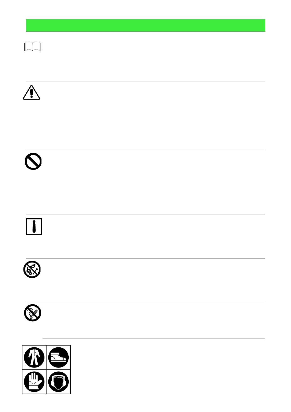 INTERDICTION, NE PAS FAIRE! - signifie qu'il est absolument interdit d' effectuer les opérations reportées sous cette indication,