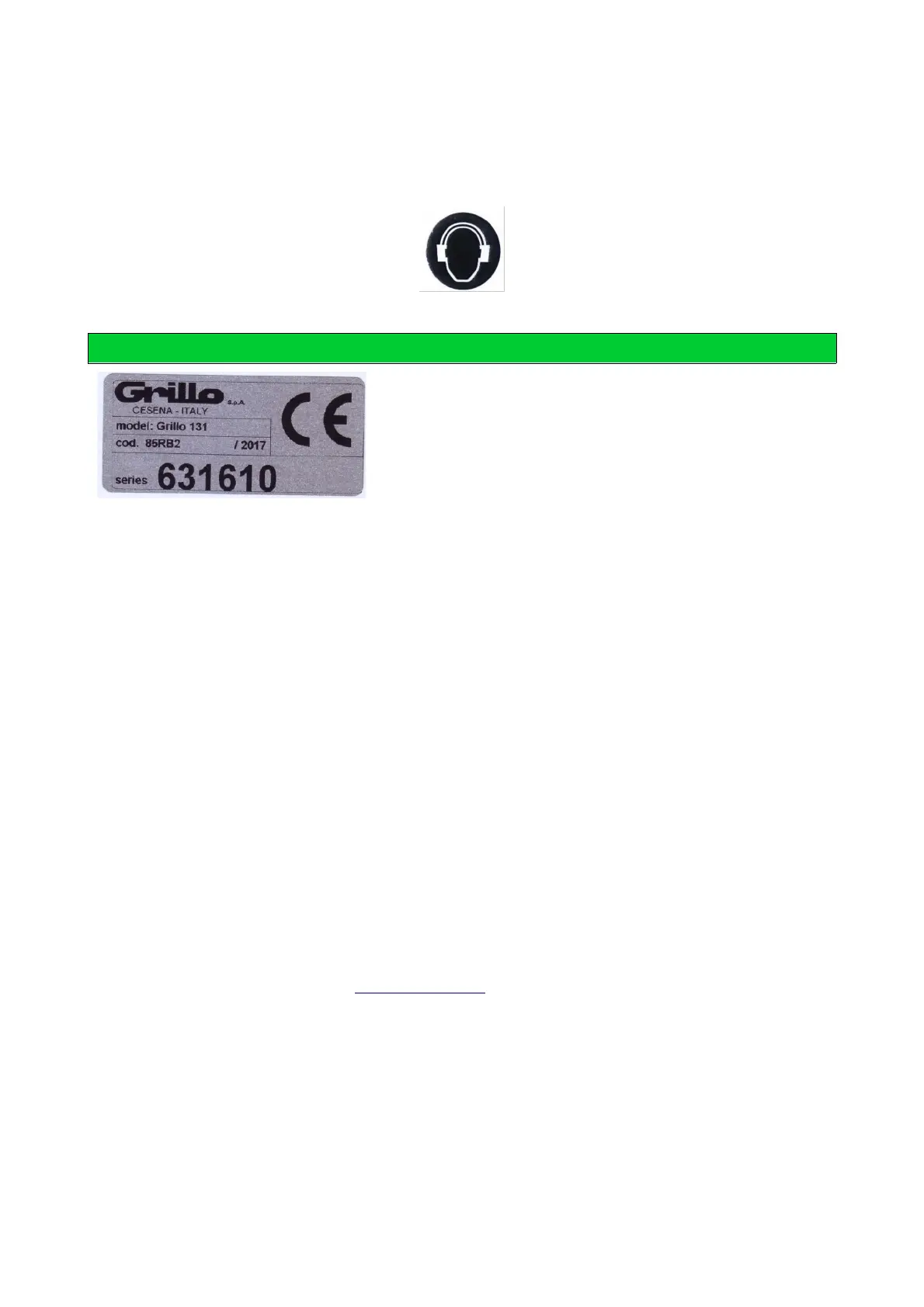 Nell'uso continuativo della macchina si raccomanda l'utilizzo di sistemi per proteggere l'udito.