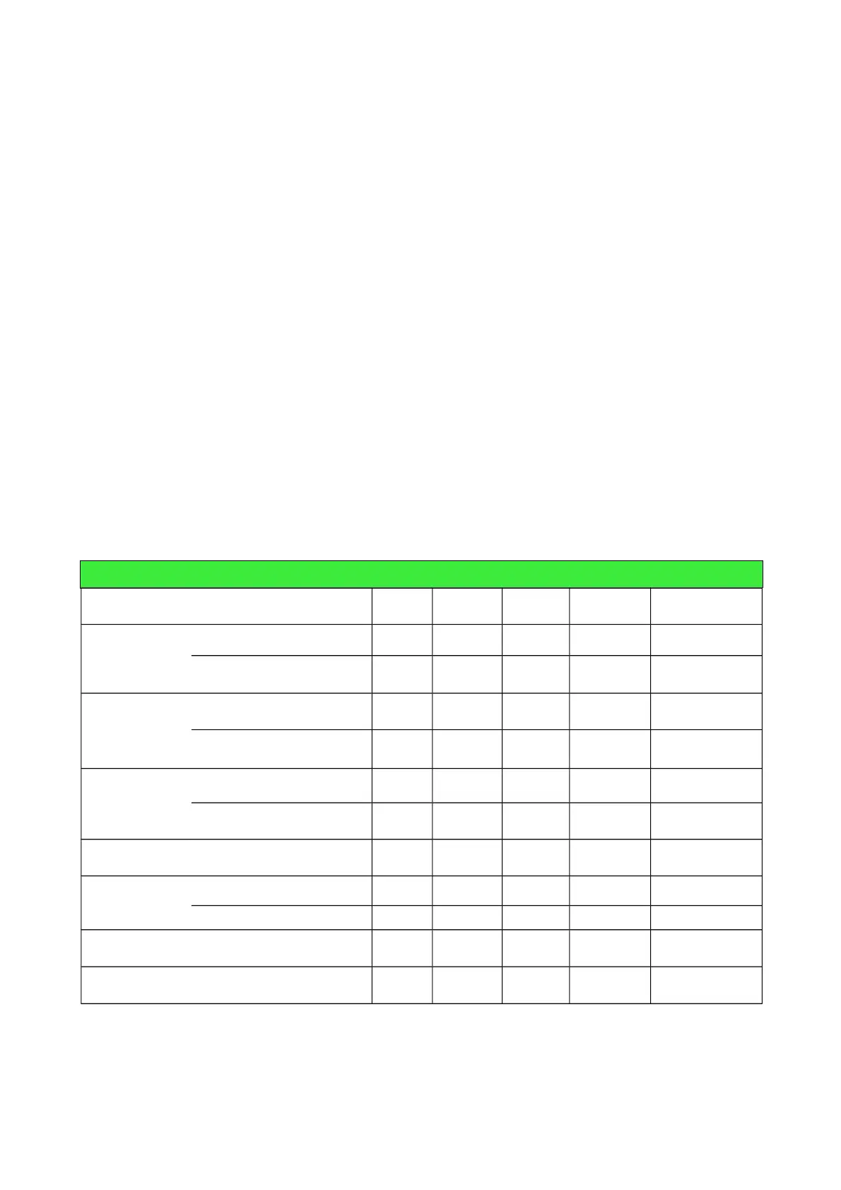 TABELLA RIASSUNTIVA MANUTENZIONE