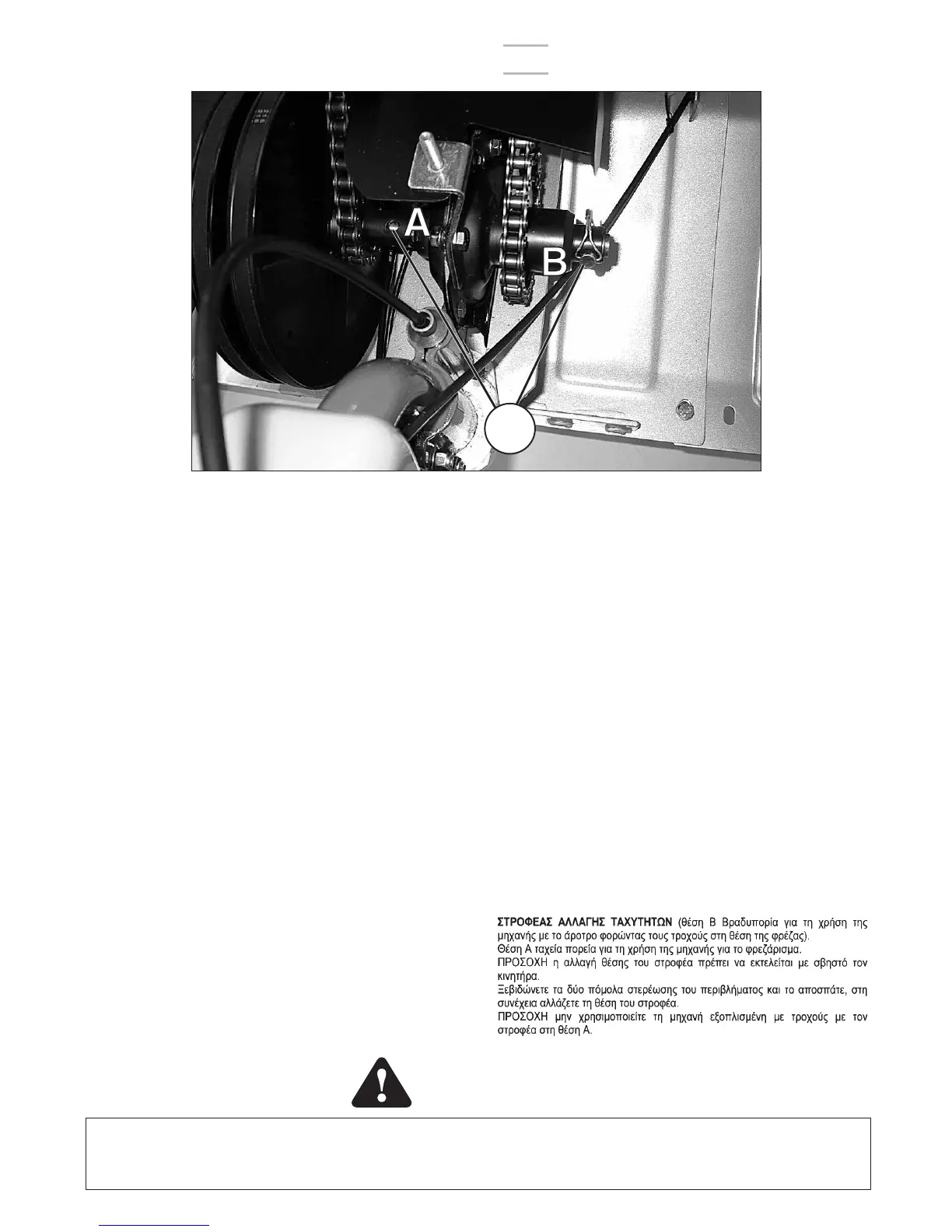 tiller). Position A, high speed travel for using the machine for
