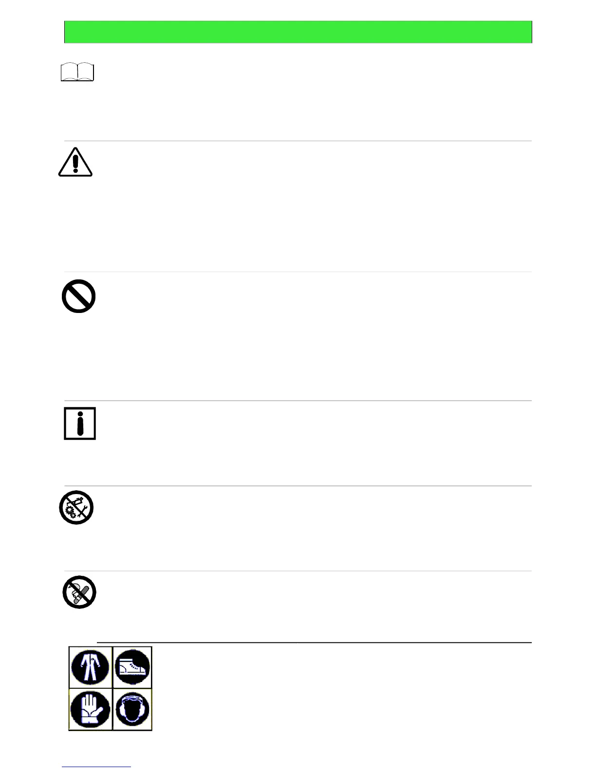 INTERDICTION, NE PAS FAIRE! - signifie qu'il est absolument interdit d' effectuer les opérations reportées sous cette indication,
