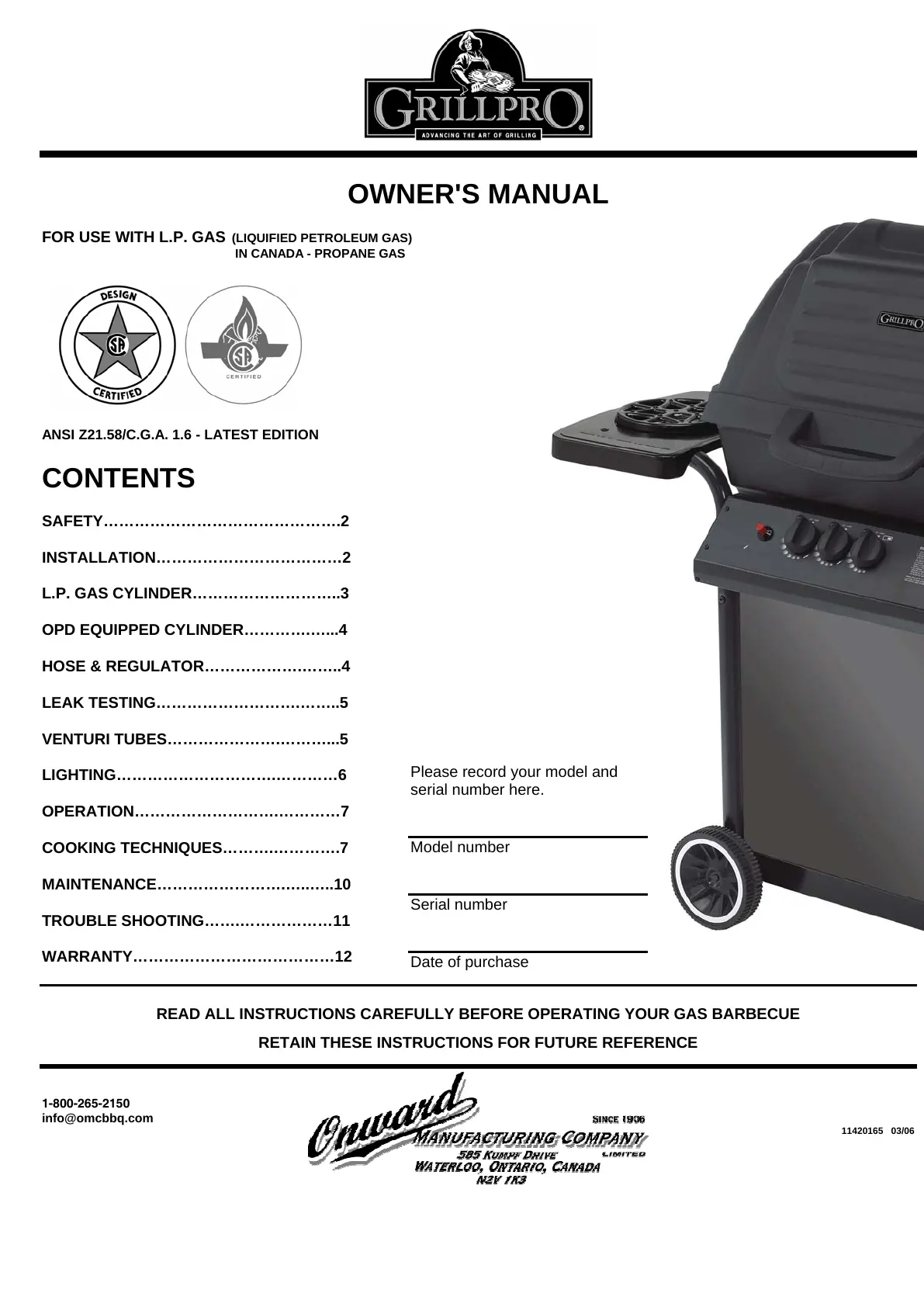 READ ALL INSTRUCTIONS CAREFULLY BEFORE OPERATING YOUR GAS BARBECUE