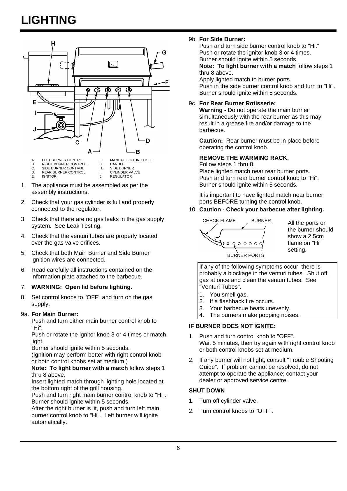 C. SIDE BURNER CONTROL H. SIDE BURNER