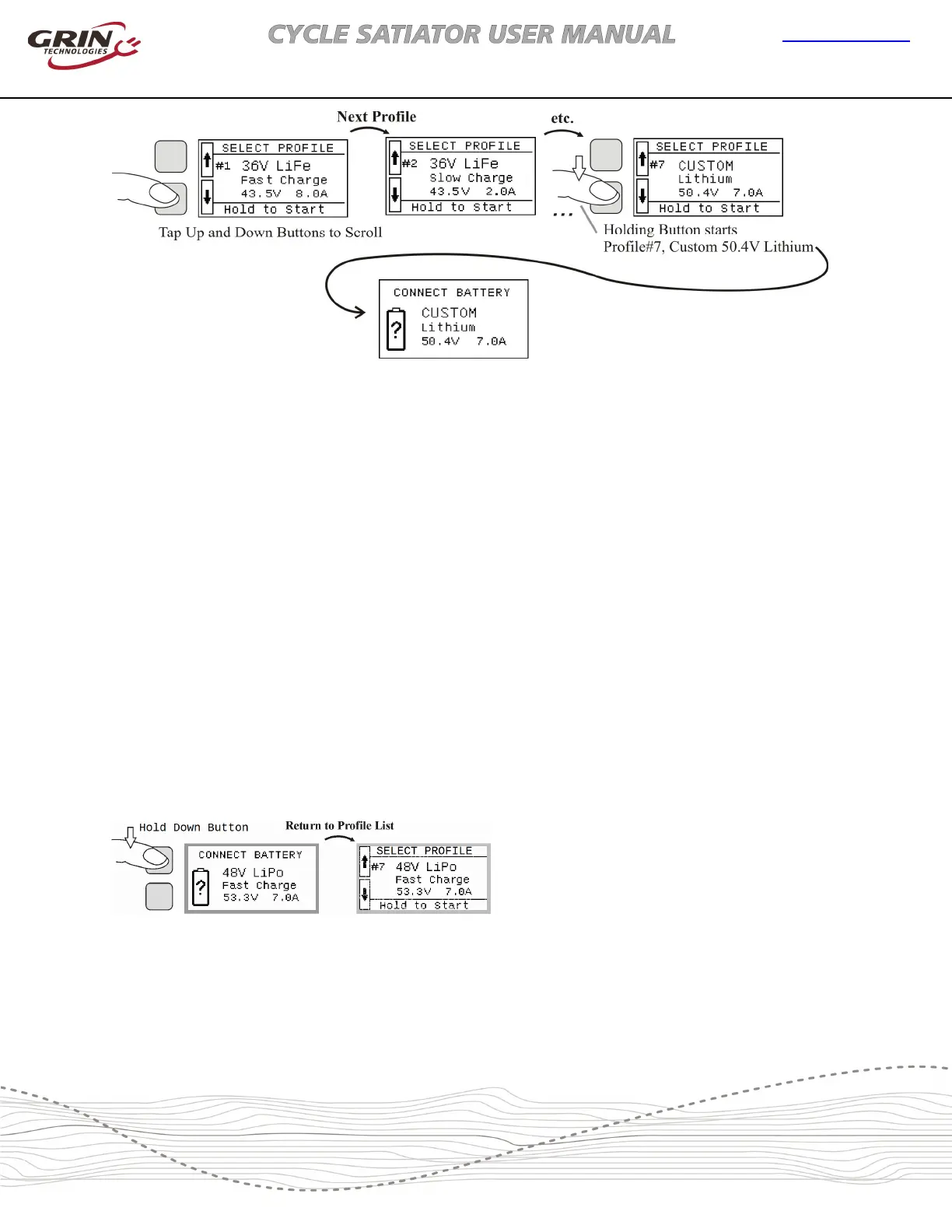 to the profile list before you connect the battery. You can scroll through the active profiles and