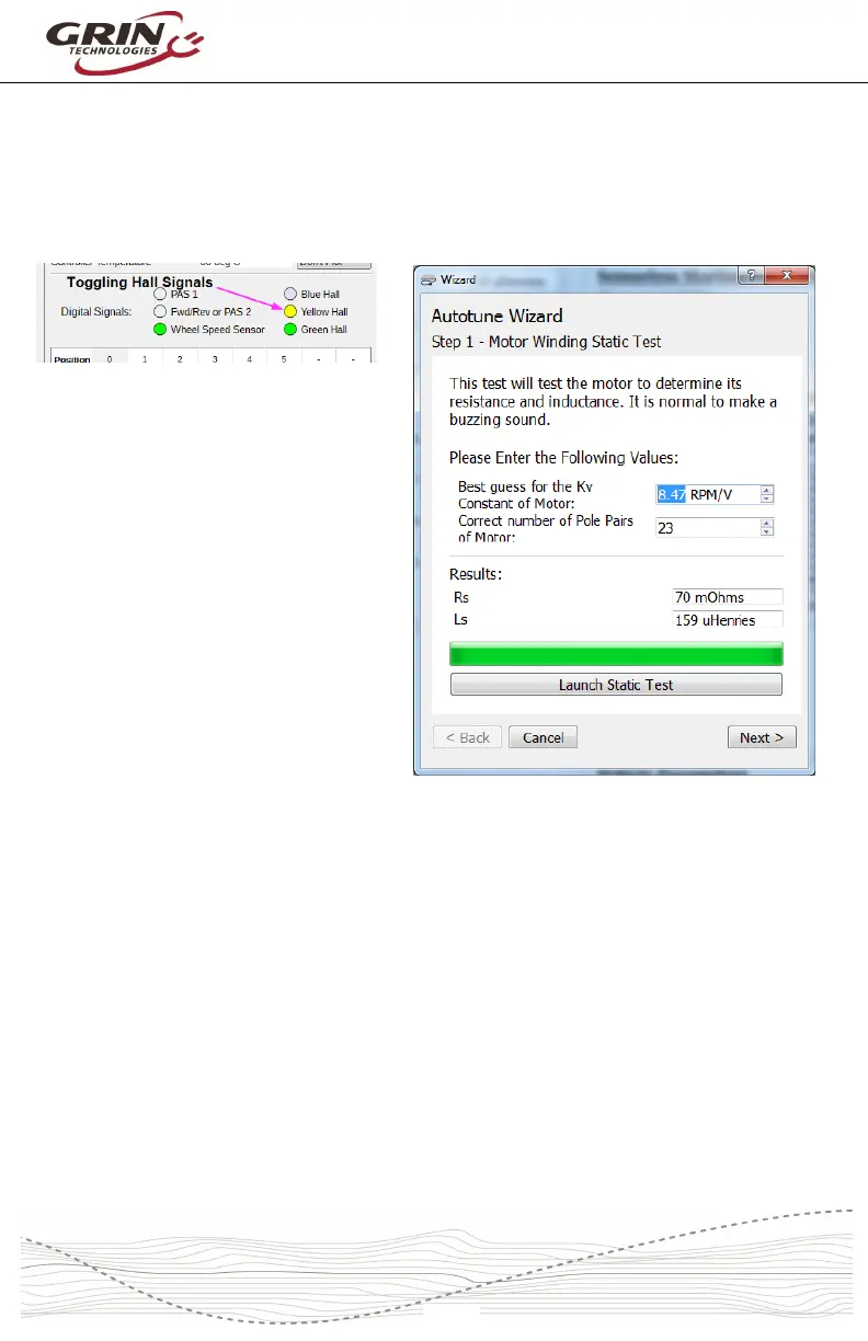 the Hall sensors if they are present. If the motor spins backwards during this test,
