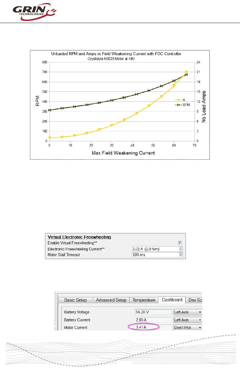 weakening, the motor speed increases from 310 rpm to 380 rpm, while the no